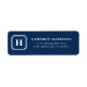 Rótulo de endereço monograma clássico e simples. Ele apresenta um quadro quadrado com cantos curvos e tipografia clássica sobre fundo azul marinho. Personalize adicionando um monograma, nome e endereço. Esta etiqueta de ouro será perfeita para eventos especiais e uso pessoal.