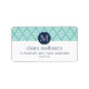 Nossas etiquetas de endereço de retorno de chic pré-disquete apresentam um padrão aqua e um padrão geométrico de diafrão-diamante branco e um monograma inicial de solteiro em azul-marinho clássico. Adicione seus detalhes de nome e endereço para uma adição exclusiva a toda a correspondência.