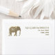Sencillo, moderno, elegante, rótulo de endereço de devolução branco com monograma e elefante dourado, símbolo de: amor, fertilidade e boa sorte.