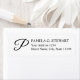 Um design elegante preto e branco com nome e endereço em estilo de fonte profissional preto com um monograma preto elegante em fundo branco.