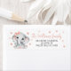 Uma menina rosa e com uma cor-de-água, elefante, chá de uma menina, que devolve etiquetas de endereço.