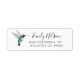 Etiqueta de endereço de retorno cômoda com um beija-flor da Costa em fundo branco. Personalize-o adicionando seu nome e endereço. Os Hummingbird de Costa são pequenos beija-flores que vivem nos desertos de Sonoran e Mojave, e nas áreas de chaparral e esfregão de sábio na costa da Califórnia. São polinizadores importantes de cactos e plantas do deserto. Eles também podem ser encontrados em parques, jardins e montanhas de elevação de mais alto em áreas secas. O macho tem uma coroa roxa brilhante e garganta que se estende até um ponto em cada lado. São batizados para Louis Marie Pantaléon Costa, Marquês de Beauregard, que era estadista francês, arqueólogo, historiador e ornitólogo.