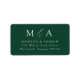 Etiquetas de endereço de retorno de casamento legantes que incluem as iniciais do monograma do casal separadas por uma amostra e apresentadas em um roteiro de caligrafia branca em um fundo verde escuro. Personalize as etiquetas de endereço de volta do monograma com o endereço abaixo. As etiquetas são perfeitas para usar em casamentos, chás de panela e outros eventos especiais.
