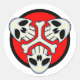 Um adesivo de arte Pop com três crânios em um círculo vermelho com um osso de três pontas no centro.