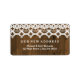 Uma madeira marrom decora esta etiqueta de endereço de estilo rústico. Bonito renda branca do topo. A maneira perfeita de deixar amigos e familiares saberem que se mudou.