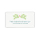 Bela etiqueta de endereço ou envio de Natal minimalista com um simples ramo de visco verde e bagas de coral em um fundo branco opcional. Adicione facilmente um nome e endereço usando o modelo fornecido. Procure ID441 para ver outros produtos coordenados e opções de cores adicionais para este design.