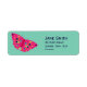 Etiquetas de endereço personalizadas de design na moda com borboleta rosa-branca, com um design artístico de desenho de borboletas cor-de-rosa giro contra um fundo de cores personalizável azul-aqua. O texto é perfeitamente personalizável para incluir seus próprios detalhes pessoais.