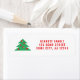 Etiqueta do endereço de retorno de feriado da família vermelha da árvore de Natal. Vestido e festivo etiqueta de volta de Natal com uma árvore de Natal simples. Cores festivas em verde, vermelho e branco. Excelente para o seu correio de férias.