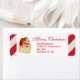 Jolly Papai Noel, com um tiro de Holly no chapéu, é apresentado com uma borda de cana-doce listrada. Feliz Natal está escrito em um roteiro vermelho festivo mais escuro com seu nome e endereço personalizados. Opções, se preferir apenas o seu endereço, omita o nome da família. Feliz Natal pode ser mudado se houver ajustados, para Felizes Feriados, por exemplo. Divertido e colorido nos feriados. Ajustado apenas a opção de produto de pequeno tamanho.