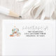 Natividade Cena Três Reis Retorna Nome e Endereço. Uma bela cena simples de Natividade de Maria, José e Jesus bebê com os Três Sábios, animais uma linha do Guia Us To Thy Perfect Light em um roteiro elegante está acima do seu nome de retorno e detalhes de endereço à direita.