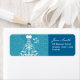 Linda e elegante design de noiva tradicional, etiquetas de endereço personalizadas com um design de um vestido branco de casamento contra a ilustração pavão azul de pavão contra a elegante e elegante cor azul de fundo do marinho. O texto é perfeitamente personalizável para incluir seus próprios detalhes pessoais.