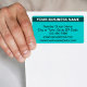 Etiquetas de envio são sempre usadas para pacotes ou encomendas e às vezes para envelopes de correio, mas também podem ser usadas como material de marketing para divulgar seu negócio ou promover sua marca para clientes. Etiqueta de envio verde-teal personalizável com o nome do seu negócio destacado, uma etiqueta que você pode usar para construir reconhecimento da marca. Enfatize o nome do seu negócio. Destaque-o. Torne-o visível para os clientes. Para personalizar esta etiqueta de envio, digite o nome do seu negócio, endereço, número de telefone, e-mail e site ou página de mídia social. Por favor, verifique a aparência após digitar os textos. Se a aparência for de seu agrado, você pode fazer seu pedido agora. Se precisar redimensionar ou reposicionar os textos, ajuste no ferramenta de design. Você também pode alterar a cor de destaque, cor de fundo, cor da fonte e estilo da fonte na ferramenta de design.