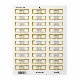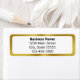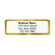 Essas etiquetas de endereço de devolução comercial têm quatro linhas de texto. A linha superior está em negrito para o nome comercial. Três linhas de texto adicionais estão disponíveis para o endereço, cidade, estado, CEP e número de telefone. O rótulo tem uma borda de ouro falsa (e não em folha).