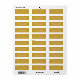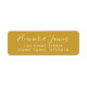Um rótulo de nome e endereço de retorno temático dourado e branco com o seu nome em uma fonte script acima dos detalhes do seu endereço em um texto clássico.