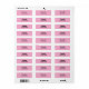 Estas etiquetas rosa pálido têm duas linhas de texto preto. A linha superior é para um nome. A linha inferior é para um número de telefone. Todo o texto pode ser editado ou excluído. Estas etiquetas de número de telefone são perfeitas para etiquetar os itens do seu filho para a escola.