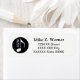 Um rótulo de endereço legal com uma imagem gráfica circular de uma nota musical, personalizada com seu próprio nome, iniciais e informações adicionais