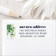 Esta etiqueta de endereço de retorno coordena-se com a série "O seu quarto de hóspedes mudou-se para o lago" de cartões de endereço e apresenta as árvores de cores aquáticas verdes folheadas na frente e no verso das próprias cartas. Foi usada a mesma tipografia azul escura e a mesma fonte sans serif. Você pode rever facilmente o texto no modelo de personalização.