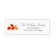 A etiqueta do endereço de retorno de outono das bruxas com folhas vermelhas e laranja. As letras pretas podem ser personalizadas com suas próprias informações. Excelente de enviar Cartões de Halloween e outono aos seus amigos e familiares.
