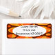 Este design de etiqueta de endereço de retorno tem duas camadas de ovais em um campo de amarelo, marrom e laranja.