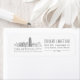 Uma etiqueta de endereço única representando a bela cidade de Oklahoma City. Este rótulo apresenta uma ilustração estilizada do horizonte único da cidade com seu nome embaixo.
