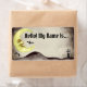 Será mais fácil saber quem é quem na sua festa anual de Halloween com os nossos autocolantes "Olá, Meu Nome É". A design apresenta uma lua amarela assustadora com morcegos pretos do Dia das Bruxas voando por aí e um gato preto. É colocado sobre um fundo de cor de água com tons de sépia cinza. #Halloween #Hello #PartySupplies