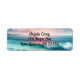 Céu cor-de-rosa, ondas de turquesa, etiquetas de endereço de retorno de cena de praia.