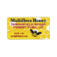 Etiquetas de boião de mel em ouro, em formato paisagístico, com uma abelha estilizada a voar ao sol da manhã. Texto personalizado para o tipo de mel, apicultor ou nome apiário, localização, peso líquido e sítio web facultativo ou outras informações de contato. Crie um conjunto de produtos personalizados para sua empresa, contatando-nos com o link abaixo. ©dotpattern