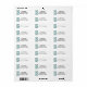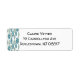 Essas etiquetas de endereço de retorno têm um padrão repetitivo de ovais em azul retroativo com ovais brancos dispersos em um campo de branco.