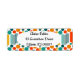 Essas etiquetas de endereço de retorno têm uma design moderna de século médio de ovais e círculos em laranja, ouro, lacre e turquesa em um campo de branco. Quer o mesmo design com cores diferentes? Me mande mensagem.