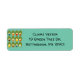 Essas etiquetas de endereço de retorno têm uma design moderna do século médio de ovais verdes com ovais e círculos neles fazeres que eles se parecem com ovos em cores retrorativas de vermelho, amarelo, azul, verde, marrom e laranja em um campo azul claro.