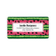 Etiquetas de endereço com um padrão de melancia fofo. Casca verde em camadas de listras junto com uma camada de listras cor-de-rosa com dentro de sementes pretas. Diversão e design de verão. Um retângulo colocado em cima com o dentro de texto.
