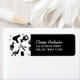 Rótulo de endereço com um padrão preto e branco das silhuetas de diferentes ferramentas de cabeleireiro, como tesouras, pentes, secadores de cabelo, etc.