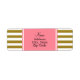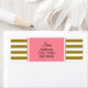 Rótulo de endereço de retorno de padrão listrado e dourado metálico. O design apresenta um padrão listrado de ouro metálico e branco e um retângulo cor-de-rosa com suas informações personalizadas.