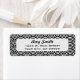 Etiquetas de endereço de retorno legal e modernas com um padrão geométrico preto e branco.