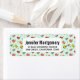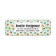 Devolver etiquetas de endereço com um padrão de aves brancas desenhadas à mão. Pinheiros verdes e bonitos entre eles.