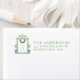 Este adesivo de endereço de retorno tem um design de pré-disquete Chinoiserie com uma moldura verde de bambu pagoda com uma coroa de Natal com um arco rosa e dois topiários em potes Chinoiserie. Você pode personalizar com um nome e seu endereço inicial.