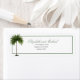 Etiquetas de endereço de retorno pessoal elegantes da Palm Tree. Uma palmeira elegante está sobre os nomes Noiva e Grooms. Elegante design de casamento formal moderno. A informação é facilmente alterada para a sua. O script moderno é facilmente alterado para suas próprias informações personalizadas. O rótulo personalizado está sozinho, mas faz parte de um pacote de papéis de carta de casamento em just Fine Designs.