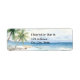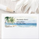 Uma praia em aquarela com palmeiras. Personalize e adicione seu nome e endereço. Letras pretas.