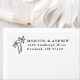 Adicione um toque de elegância tropical clássica à sua papelaria de casamento com esta etiqueta de endereço de retorno da palmeira de na moda. Apresentando palmeiras pretas desenhadas à mão no lado esquerdo em um fundo branco, esta design complementa casamentos de praia, tropical e destino. Personalize com o nome e o endereço de retorno do casal para um toque de acabamento polido. Perfeito para salvar as datas, convites, cartas de agradecimento e muito mais.