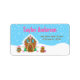Este rótulo de endereço fofo e festivo apresenta uma casa de pão de gengibre fofo decorada com doce rosa e verde. Além disso, são adoráveis gengibres com presentes, vestidos com chapéus de Papai Noel e cachecol. Ao fundo está um céu azul brilhante de inverno com flocos de neve em queda elegante. Isto é perfeito para o Natal e o feriado de inverno.