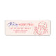 Etiqueta de endereço de retorno de Natal retrógrada com uma ilustração de Papais noeis antigos com um sinal de paz, tipografia elegante vermelha e azul e design festiva minimalista.