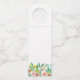 Lindos chinelos de borracha com flores e folhagens botânicas de ilha e praia arenosa em aquarela e etiquetas personalizadas para pendurar na garrafa.
