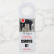 Um cabide de garrafa com um gatinho giro pendurado sobre um radiador com um sinal vermelho de primeiros socorros. Bonito para uma festa ou festa de aniversário de um noivo para adicionar a uma garrafa de água.
