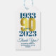Um obrigado de aniversário ousado e surpreendente que você usa a etiqueta de presente. Esta marca de aniversário especial é constituída por nascimento e data de aniversário em tipografia azul - com os 90 realçados em uma fonte de efeito ouro. Adicione uma mensagem para um obrigado de presente de festa personalizado.