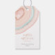 Nem todos os designs de casamento são criados iguais. Os layouts assimétricos para as peças neste impressionante conjunto de casamento provam que isso não é ruim! Banda de cor ondulada em tons contrastantes de pincel de ouro rosa e azul-lacado macio com um centro de cristal brilhando formam um sotaque geode/agate na maioria das peças do conjunto. A etiqueta de presente 'Obrigado' do casamento mostrada aqui mostra o acima mais uma modelo para adicionar uma mensagem pessoal, seus nomes e data do casamento. O reverso apresenta um fundo de abstrato de coordenação que lembra a pedra vedada com brilho. Procure ID647 para ver todas as peças de coordenação neste conjunto.
