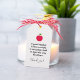 Uma maçã vermelha com tipografia moderna "um bom professor é como uma vela que se consome para iluminar o caminho para os outros" com a escrita "obrigado".