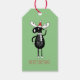 Whimsical moderna mão ilustrada de pé com chapéu de santa, cachecol e personalizável texto de Feliz Natal sobre fundo verde