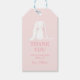 Algum coelho está a caminho! Etiqueta de agradecimento em rosa.