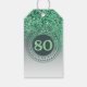 Elegante Glitter Verde Quente com um número verde único 80 enquadrado com pontos e linhas circulares modernos.