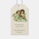 Fácil de personalizar etiquetas de presente de Natal para criar uma mensagem personalizada. Ilustração vintage de Natal imagem religiosa de férias apresentando dois anjos; recorte antigo vitoriano sobre partitura. Um anjo está tocando um instrumento musical de cordas, o violino, e o outro anjo músico está segurando partitura. Deixe este lindo design angelical ajudá-lo a celebrar as festas desta temporada.